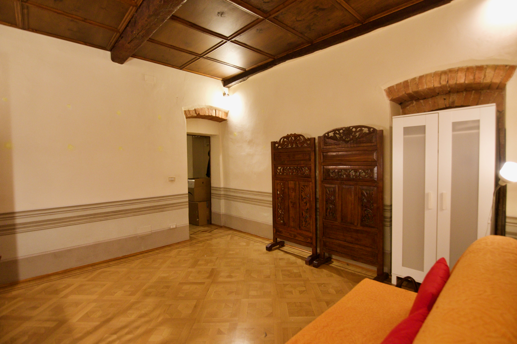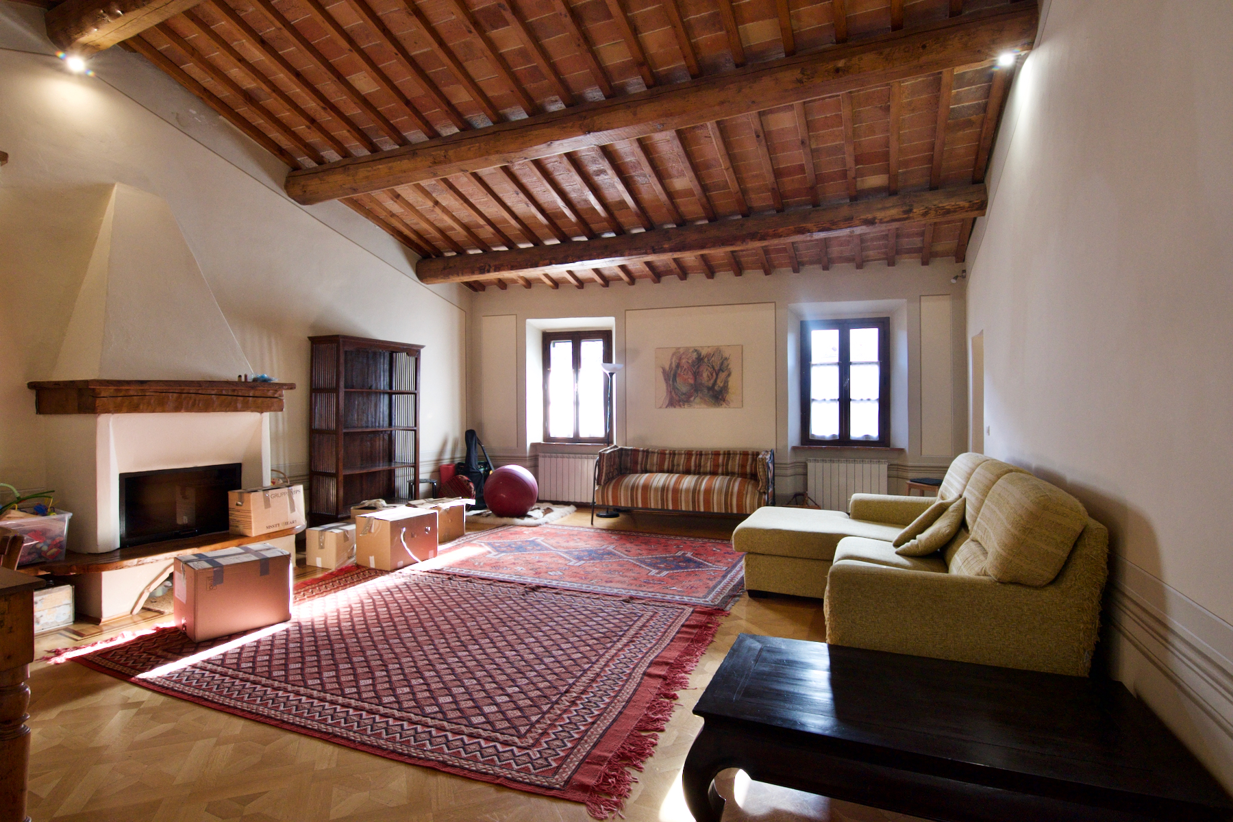 L’appartamento è situato al piano terra di uno dei palazzi storici più importanti di Sarteano con accesso dall’ampio disimpegno. Un corridoio conduce allo studio/eventuale seconda camera da letto, poi all’ampia cucina e al ripostiglio e da lì al bellissimo salone con soffitti alti con travi a vista e camino aperto. Camera padronale con ampia porta finestra e Bagno annesso completano l’appartamento che presenta pavimenti in parquet ed eccezionali soffitti con travi a vista o in legno.
