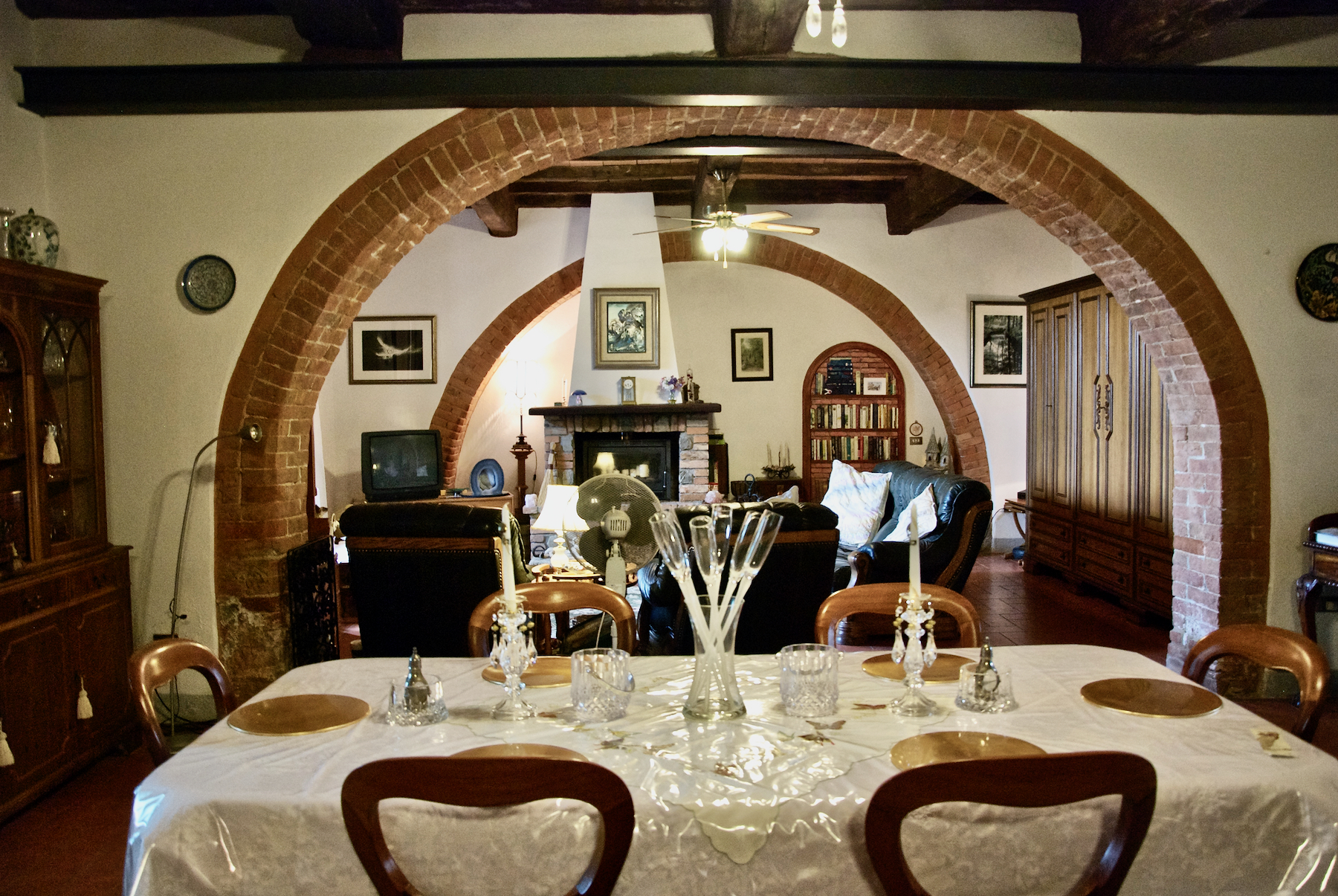 Grande zona giorno suddiviso in tre parti delimitate dalle arcate originali dell’immobile, con Sala pranzo, Salotto con camino e ulteriore spazio Soggiorno.