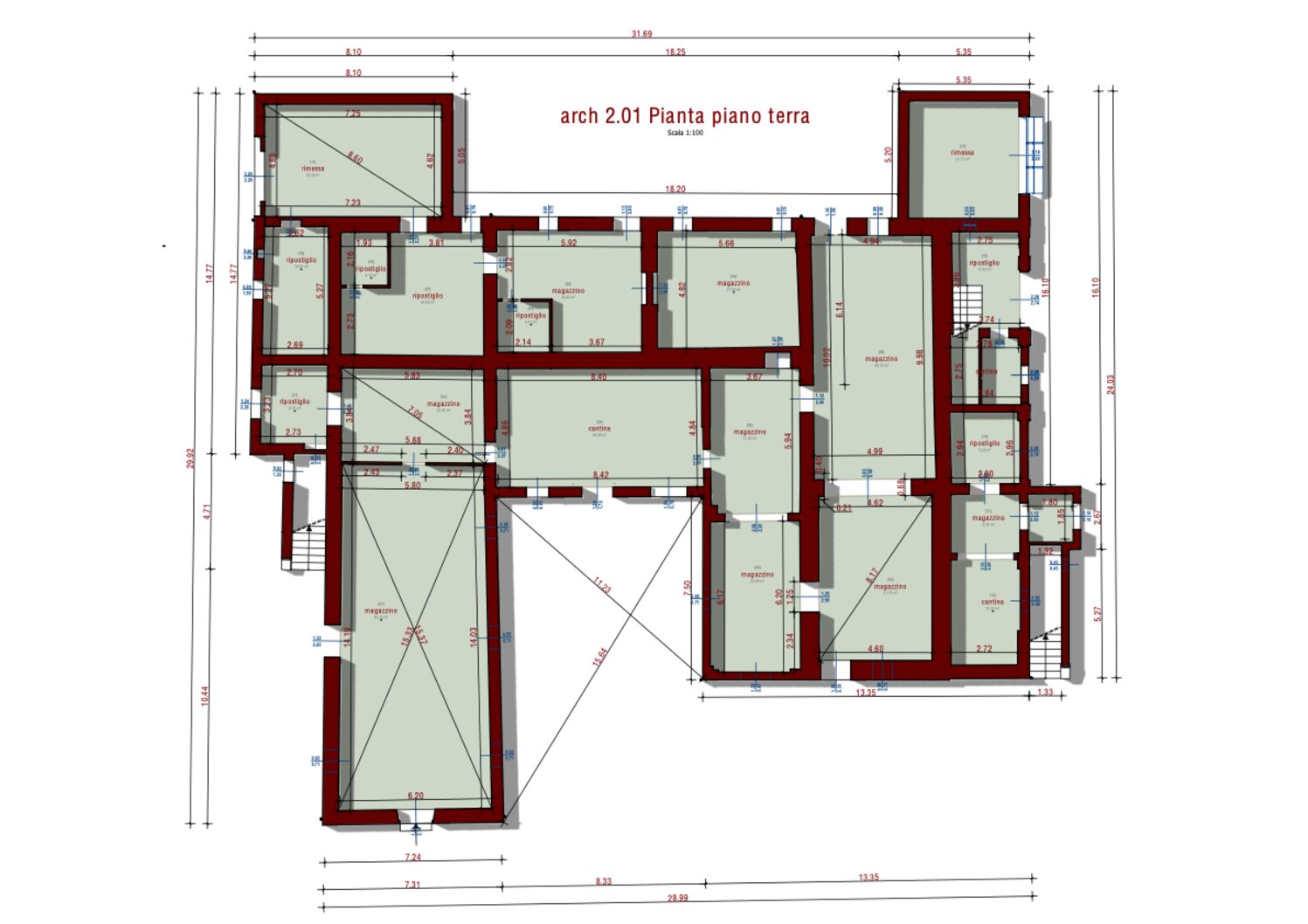 Il piano terra offre spazi garage coperti in entrambe le ali e ulteriore spazi magazzini, cantine e stalle ideali per la conversione in superbi spazi abitativi.