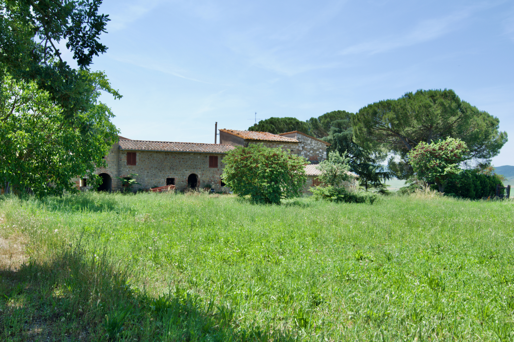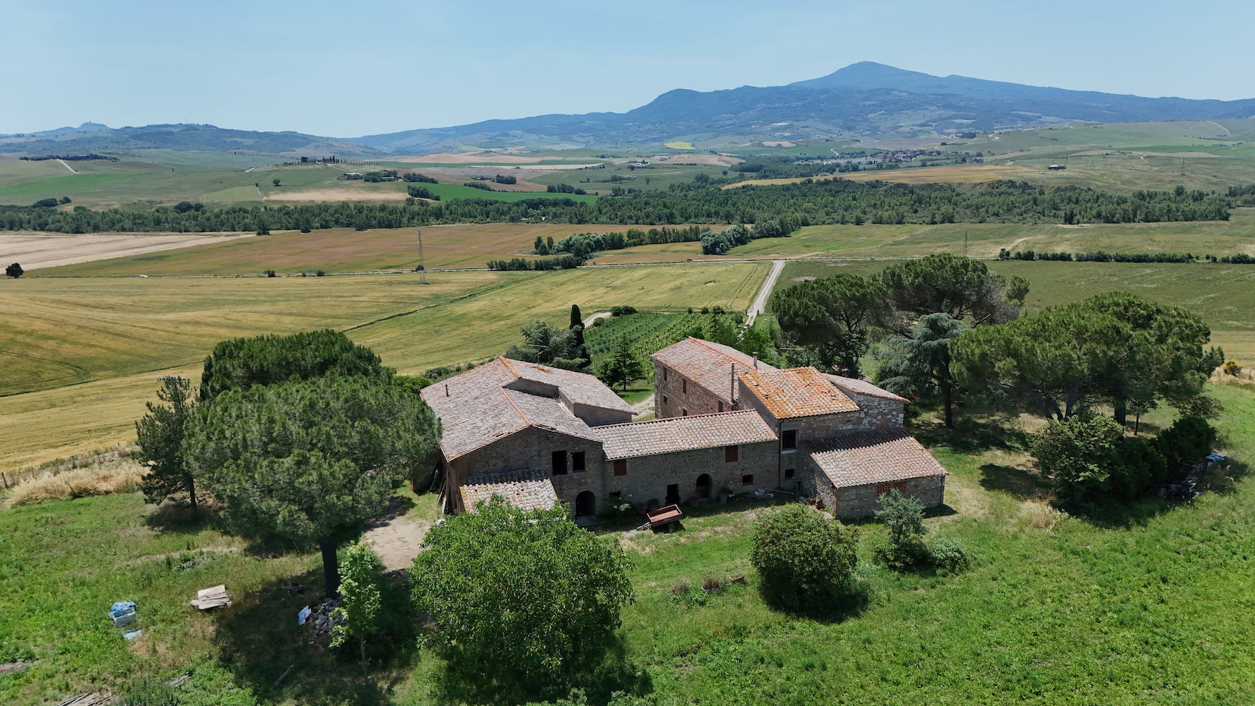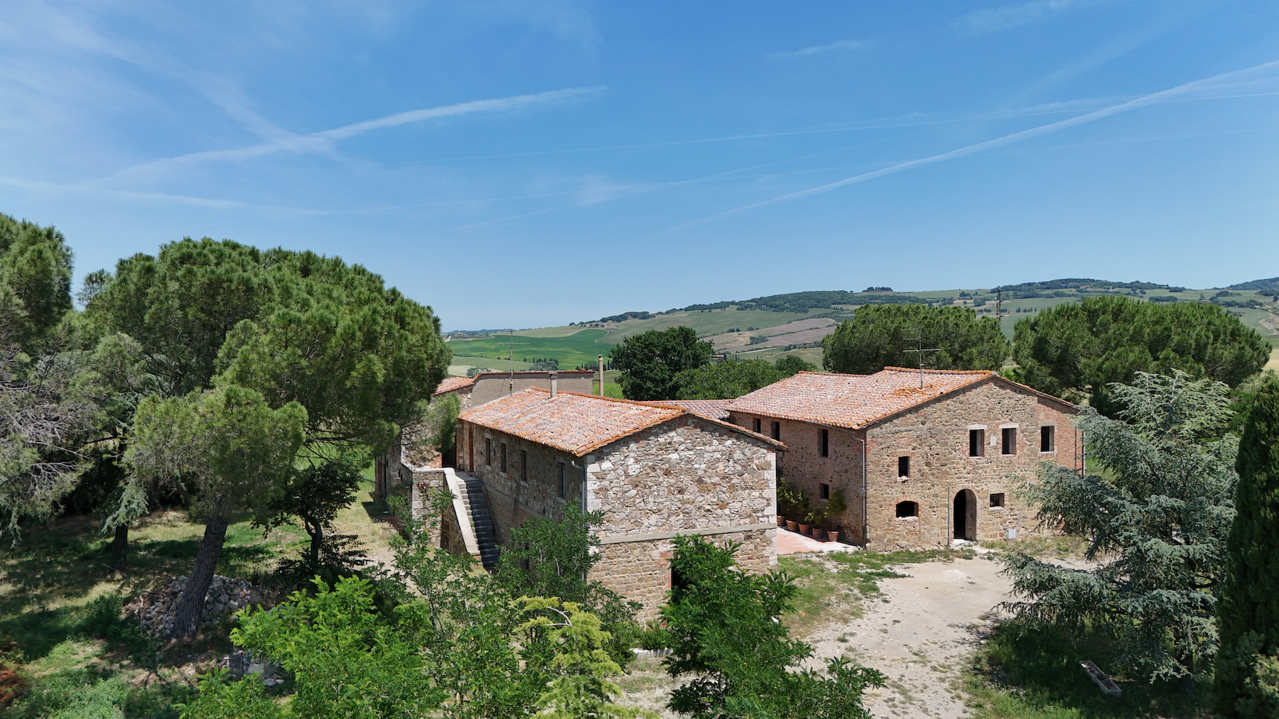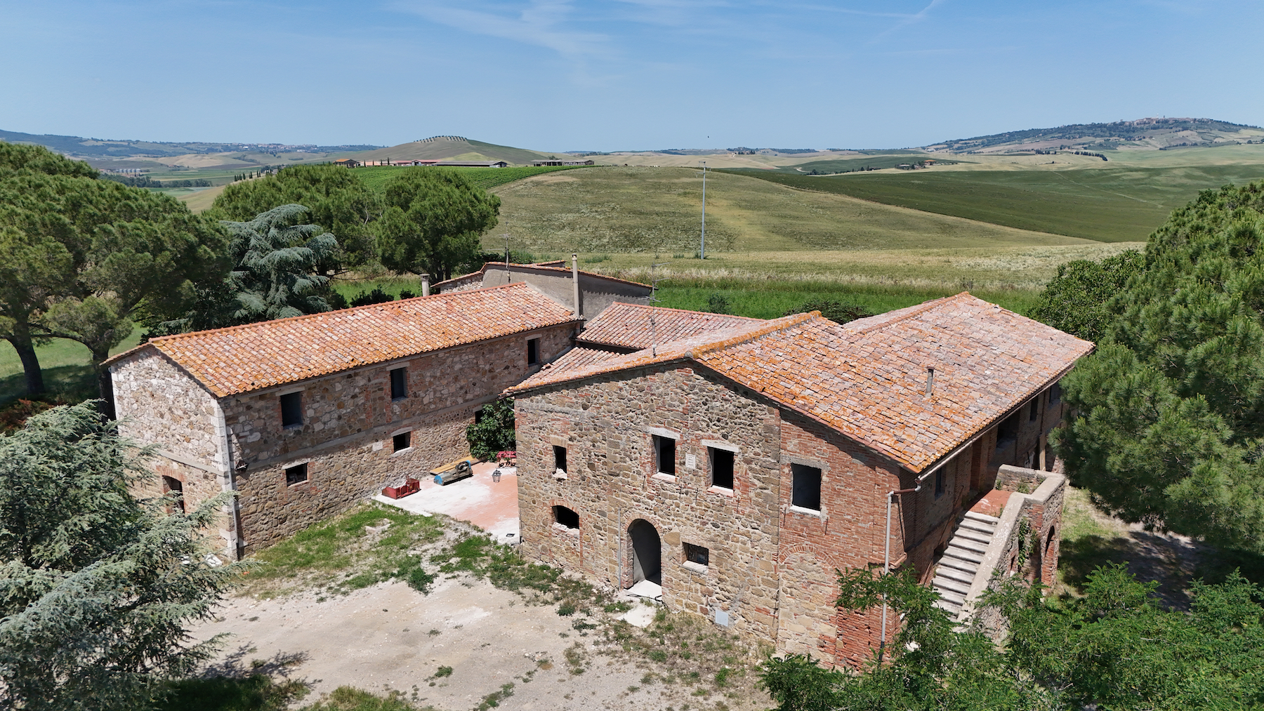 Una delle ultime proprietà veramente sorprendenti della Val d’Orcia. È particolarmente interessante per vari motivi. Situato nel cuore della valle si affaccia ad nord su Pienza e a sud sulle colline tondeggianti estendendosi fino Radicofani e Castiglione d’Orcia. La struttura é stata recentemente restaurata a grezzo lasciando infinite possibilità di completare come si preferisce, grazie anche alle sue dimensioni e la forma a ferro di cavallo, potrebbe trasformarsi in una magnifica dimora degna di questo luogo, oppure creare più frazionamenti indipendenti. Presenti sia un uliveto che un vigneto nel viale che porta alla proprietà, sarà venduta come azienda agricola.