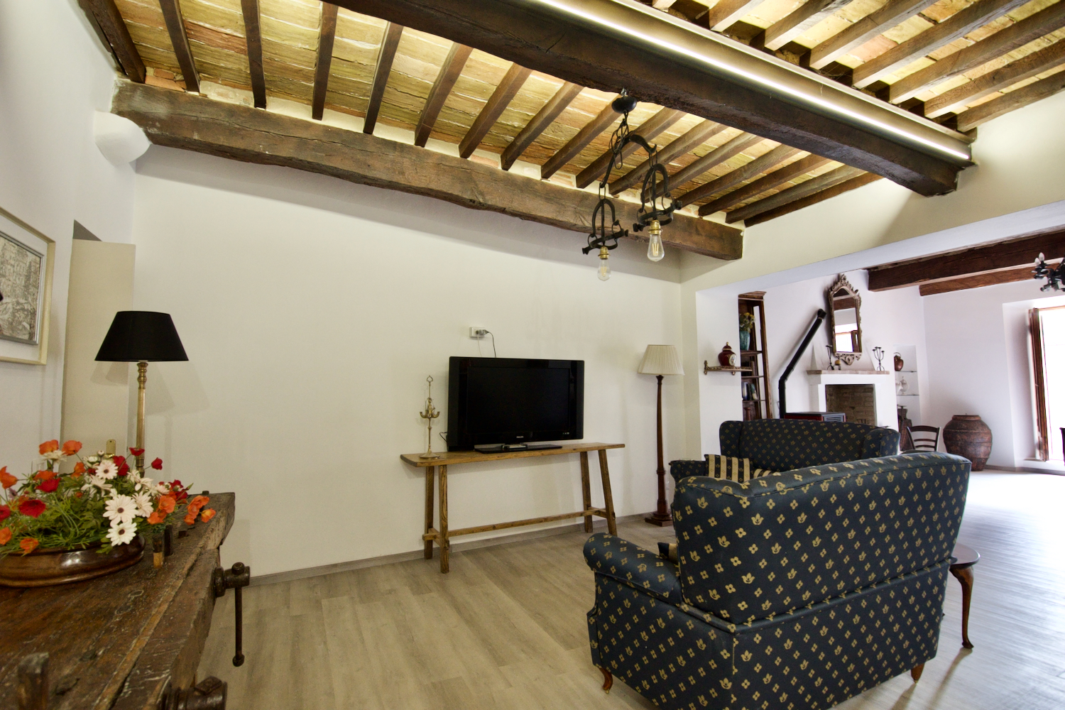 Discover this beautifully restored one-bedroom apartment located in a historic 17th-century building, offering the perfect blend of old-world charm and modern luxury. Meticulously renovated to the highest standard, this spacious property has the added bonus of a large balcony with stunning views over a picturesque medieval square, providing an ideal space to relax and enjoy the tranquil atmosphere of Sarteano, Tuscany.