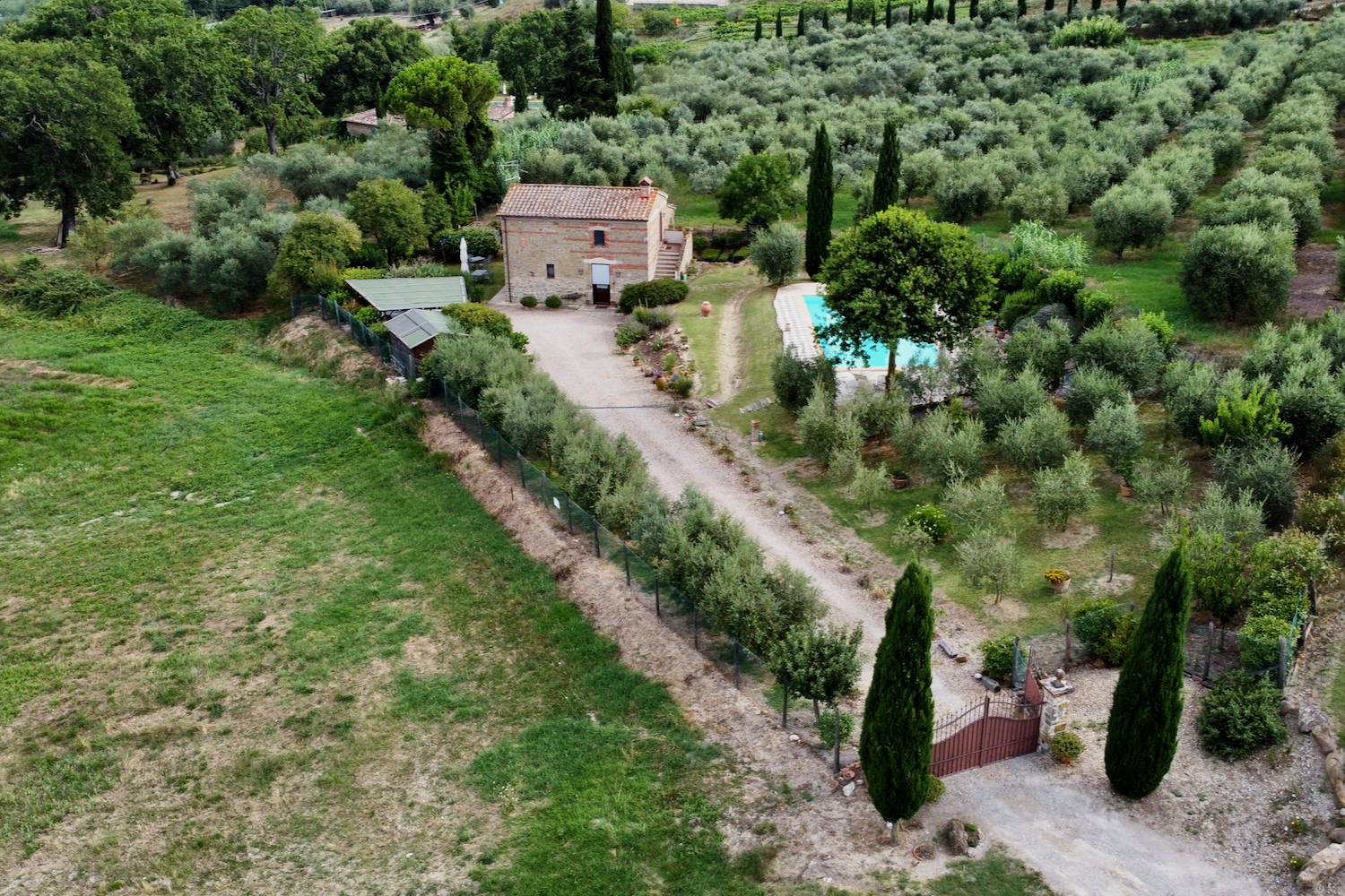 This beautifully restored country house offers a rare combination of location, privacy, and accessibility. With its well-maintained garden, swimming pool, and olive grove, it’s the perfect getaway for anyone seeking a peaceful retreat without being far from essential services and local attractions. It is extremely difficult to find a small traditional farmhouse so whether you’re looking for a permanent residence or a vacation home, the flexible layout and stunning surroundings make this property an exceptional choice in the heart of Tuscany.