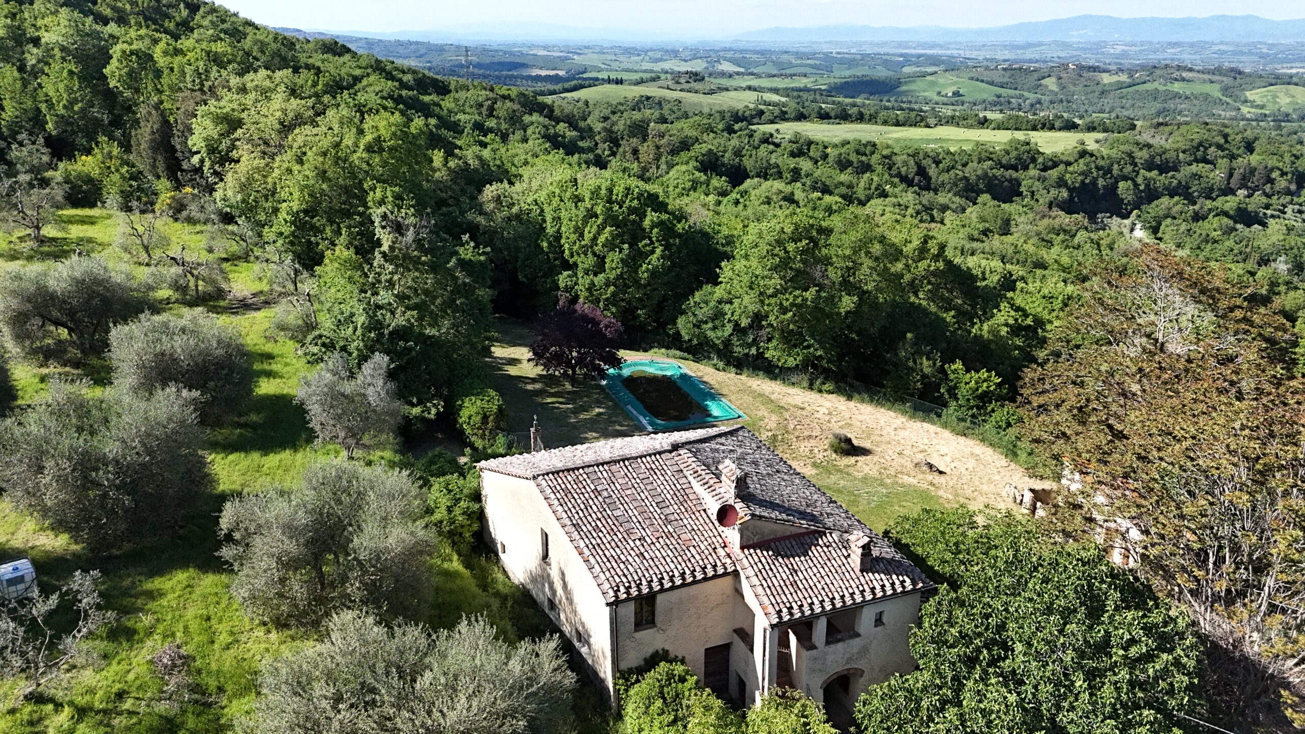 This charming 19th. century farmhouse has been thoughtfully restored on the first floor, offering a cozy sitting room, a traditional farmhouse kitchen, 3 bedrooms, and 2 bathrooms. The property still retains the potential for expansion, with the possibility to convert some of the ground-floor spaces into additional accommodation, subject to the relevant permits. The house is nestled within nearly 8 hectares of beautiful land, complete with a swimming pool and a separate outbuilding. Its location offers the rare combination of privacy, stunning panoramic views, and walking distance to the historic town of Sarteano. To further enhance the incredible views and natural surroundings, some careful pruning of the overgrown shrubs and trees would be a worthwhile investment.