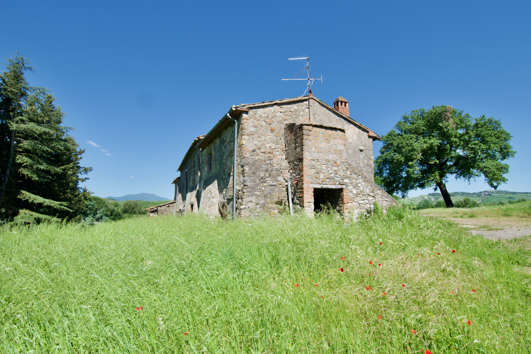 A traditional stone farmhouse to restore, situated on the borders of Tuscany, Umbria and Lazio. The property can be bought with the outbuildings and 3 hectares of land for โฌ340,000. Alternatively anyone in need of almost entirely irrigated land could purchase just the agricultural land for โฌ950,000. The farmhouse, though in need of complete restoration, is in a beautiful location and structurally really interesting being built into the side of the hill, consequently ideal to create either a main residence or second home. The outbuildings and land offer plenty of alternatives, the agricultural land benefits enormously from the fact that it is almost entirely irrigated from the nearby reservoir, whereas the large volume of outbuildings would be ideal to create an activity such as a riding school or trekking since the surrounding countryside is perfect to explore on horseback.