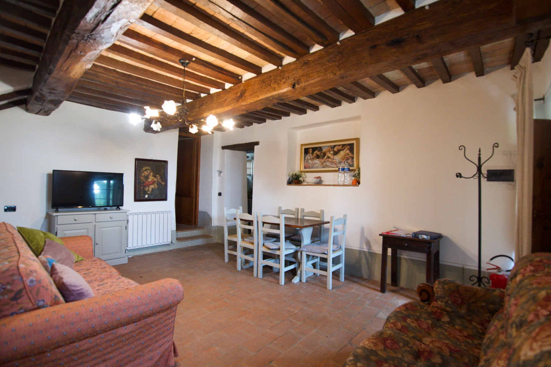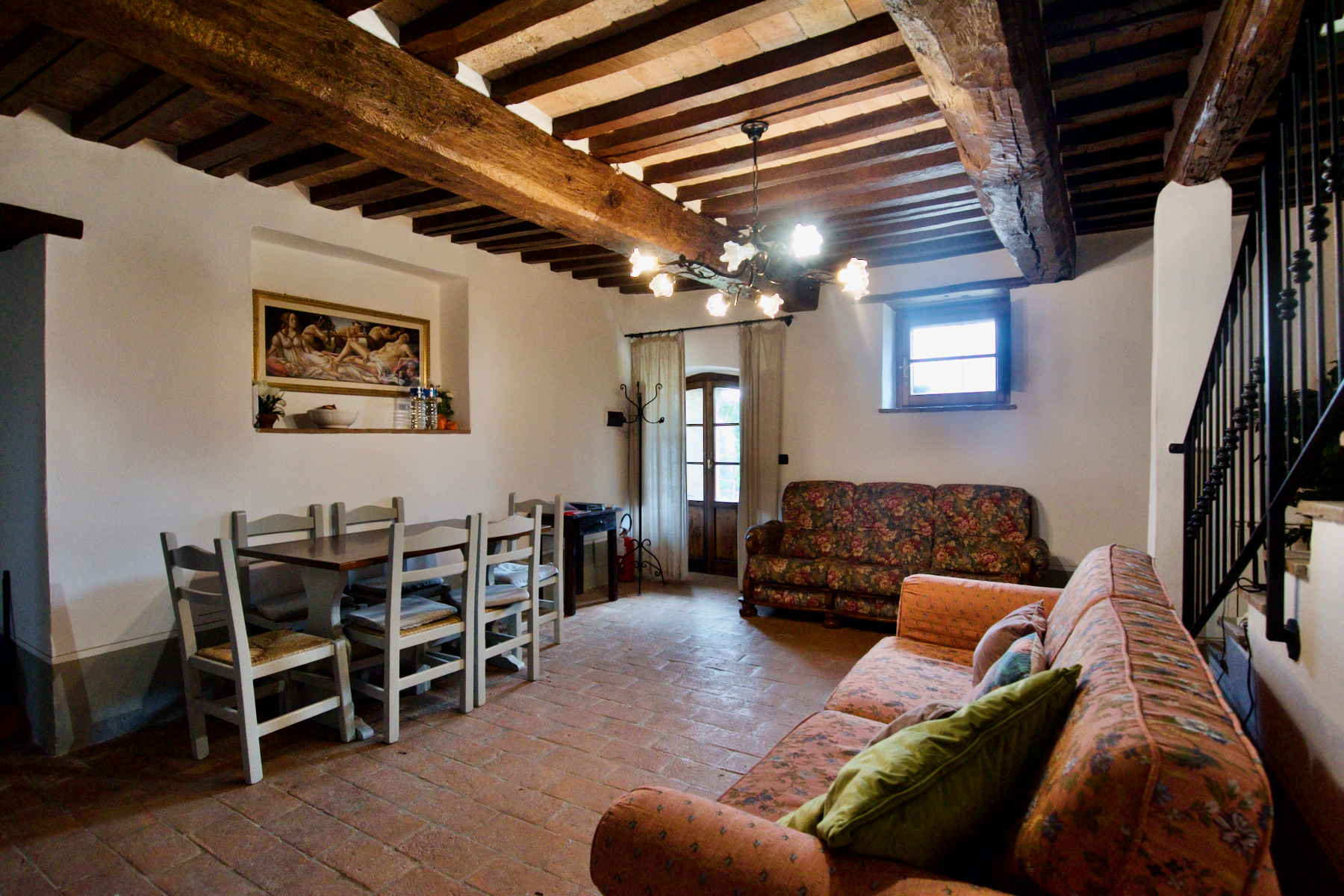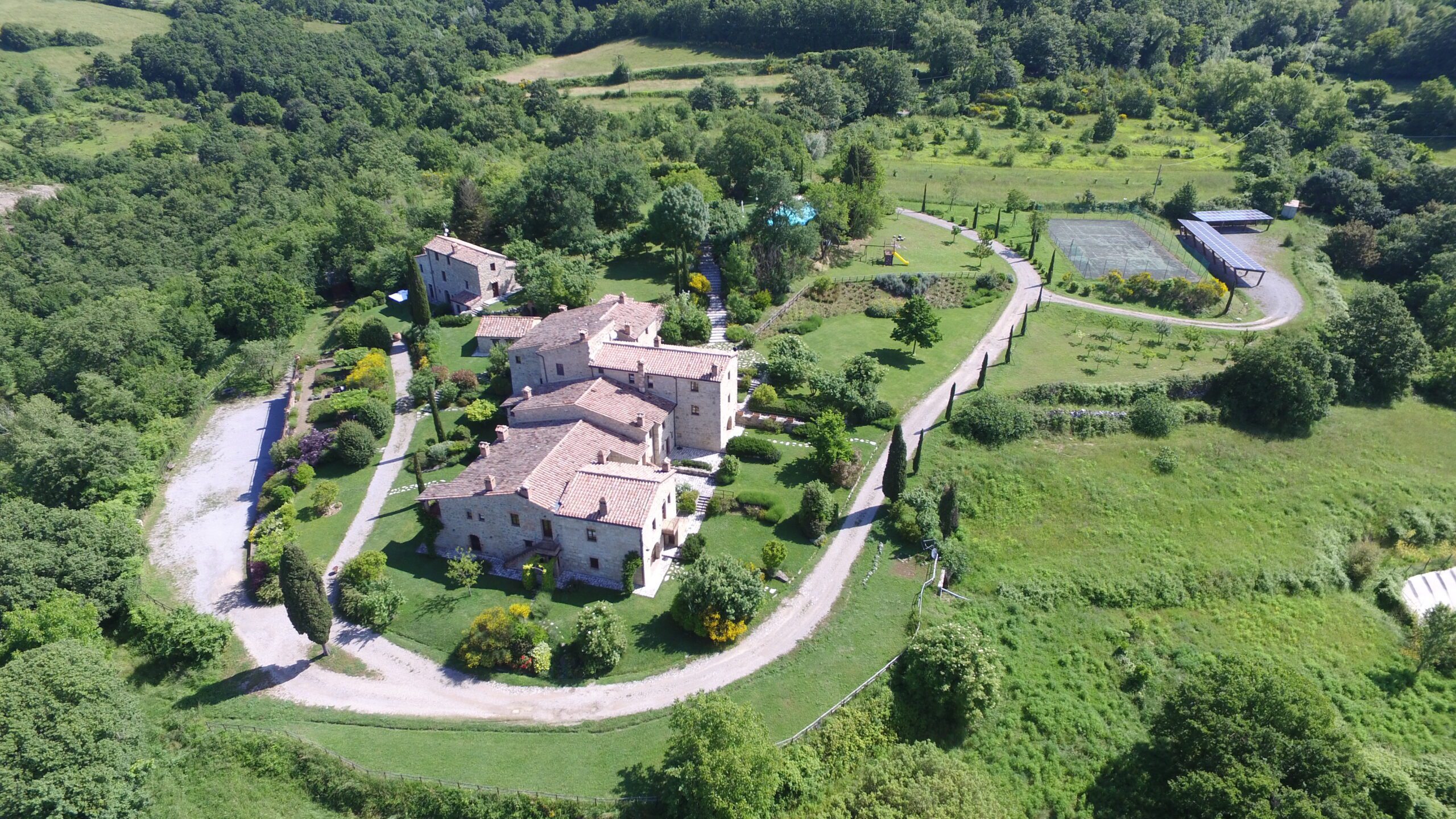 Situated in a restored hamlet in a breathtaking location between Sarteano and Radicofani, Sambuco is one of three apartments that the owner possesses within the hamlet which contains around 15 apartments in total. The entire hamlet is very well maintained with shared ownership of the surrounding land of 5.92 hectares of land that includes a communal garden area, swimming pool, tennis court, covered parking space and garage and a large games room.