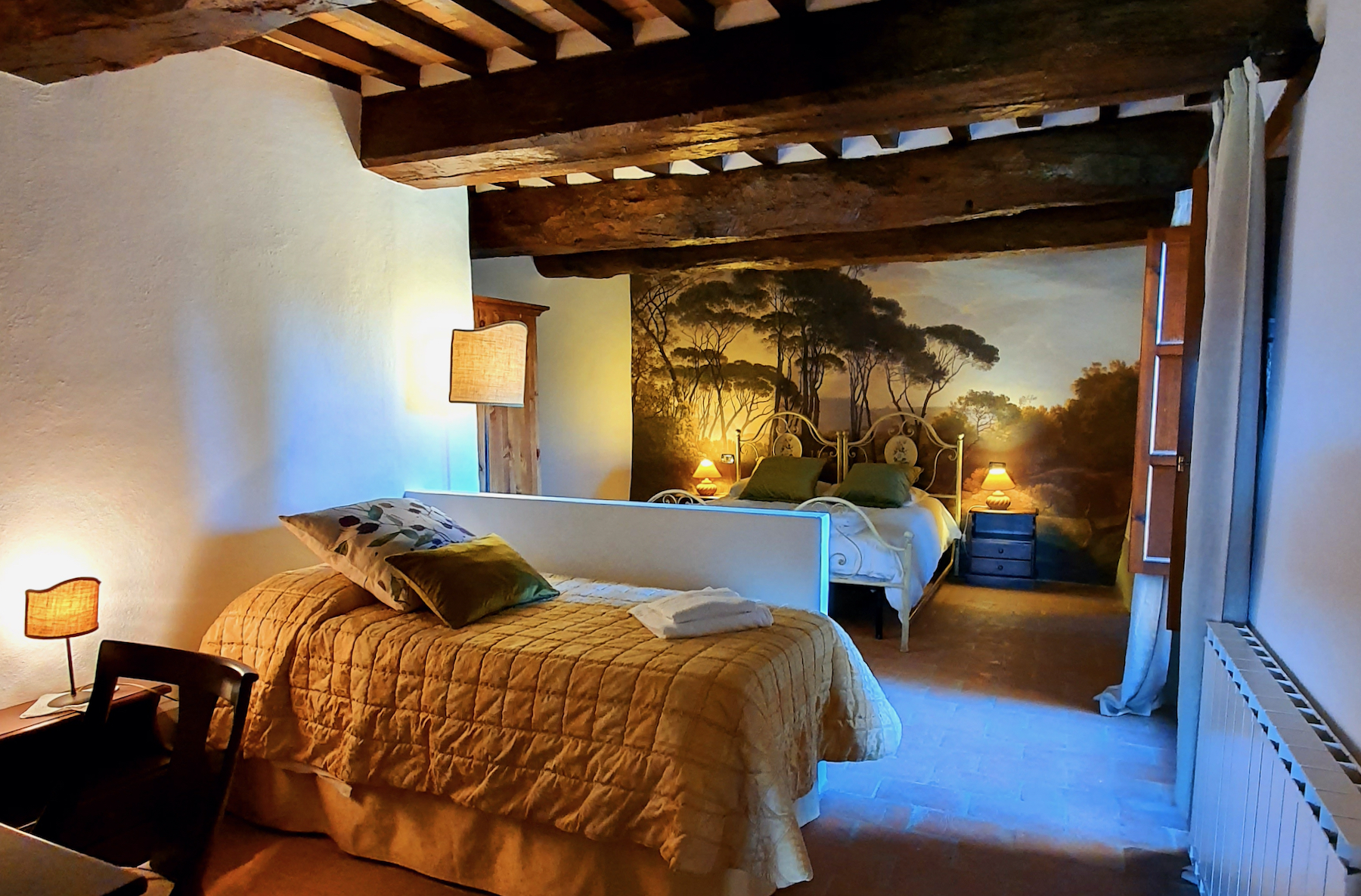 A white road leads off the main Sarteano Radicofani road passing two other hamlets, Borgo del grillo is immersed in splendid tuscan countryside in the foothills of Monte Cetona with views stretching out to the Val d’Orcia.